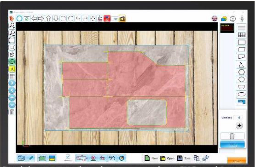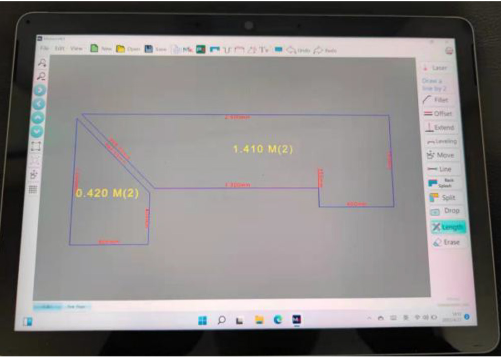 1. 軟件系統(tǒng)自主研發(fā),配合MeasureKit軟件和與五軸橋切配套的PlanSmith無縫銜接軟件完成現(xiàn)場(chǎng)測(cè)量、拆單、繪圖、排版等。