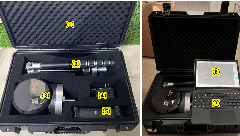 發(fā)貨包括:工具箱、測(cè)量?jī)x支架、測(cè)量?jī)x頭、電源線、平板電腦夾具、平板電腦、鍵盤